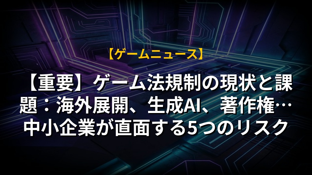 【重要】ゲーム法規制の現状と課題:海外展開、生成AI、著作権…中小企業が直面する5つのリスク