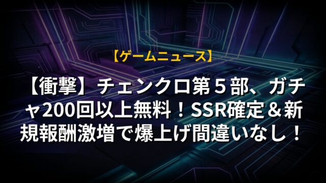【衝撃】チェンクロ第5部、ガチャ200回以上無料!SSR確定&新規報酬激増で爆上げ間違いなし!