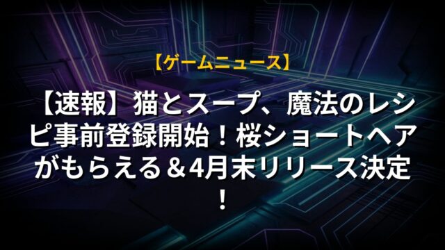【速報】猫とスープ、魔法のレシピ事前登録開始!桜ショートヘアがもらえる&4月末リリース決定!