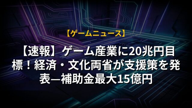 【速報】ゲーム産業に20兆円目標!経済・文化両省が支援策を発表—補助金最大15億円