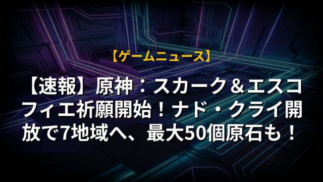 【速報】原神:スカーク&エスコフィエ祈願開始!ナド・クライ開放で7地域へ、最大50個原石も!