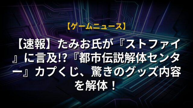 【速報】たみお氏が『ストファイ』に言及!?『都市伝説解体センター』カプくじ、驚きのグッズ内容を解体!