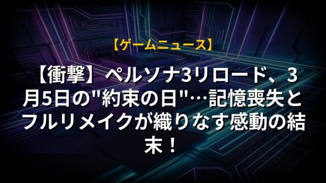 【衝撃】ペルソナ3リロード、3月5日の"約束の日"…記憶喪失とフルリメイクが織りなす感動の結末!