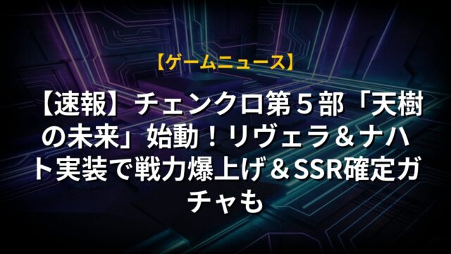 【速報】チェンクロ第5部「天樹の未来」始動!リヴェラ&ナハト実装で戦力爆上げ&SSR確定ガチャも