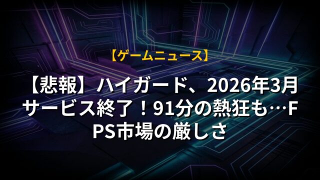 【悲報】ハイガード、2026年3月サービス終了!91分の熱狂も…FPS市場の厳しさ