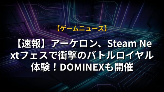 【速報】アーケロン、Steam Nextフェスで衝撃のバトルロイヤル体験!DOMINEXも開催