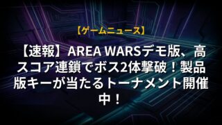 【速報】AREA WARSデモ版、高スコア連鎖でボス2体撃破!製品版キーが当たるトーナメント開催中!