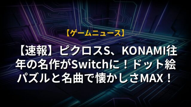 【速報】ピクロスS、KONAMI往年の名作がSwitchに!ドット絵パズルと名曲で懐かしさMAX!