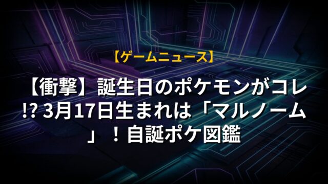 【衝撃】誕生日のポケモンがコレ!? 3月17日生まれは「マルノーム」!自誕ポケ図鑑