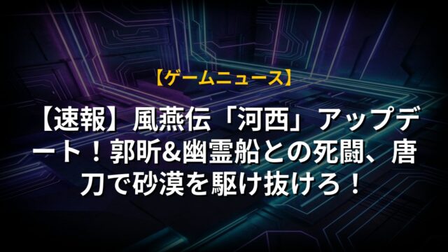 【速報】風燕伝「河西」アップデート!郭昕&幽霊船との死闘、唐刀で砂漠を駆け抜けろ!