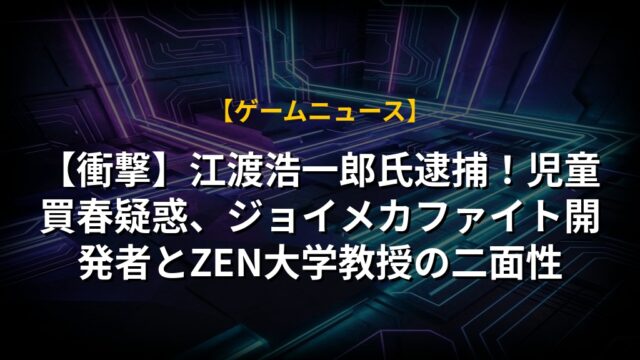 【衝撃】江渡浩一郎氏逮捕!児童買春疑惑、ジョイメカファイト開発者とZEN大学教授の二面性