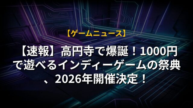 【速報】高円寺で爆誕!1000円で遊べるインディーゲームの祭典、2026年開催決定!