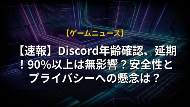 【速報】Discord年齢確認、延期!90%以上は無影響?安全性とプライバシーへの懸念は?