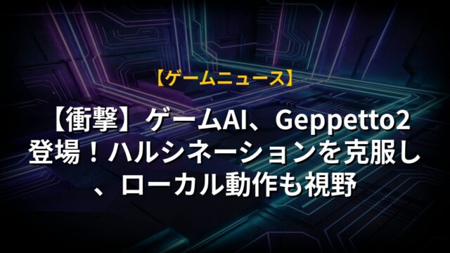 【衝撃】ゲームAI、Geppetto2登場!ハルシネーションを克服し、ローカル動作も視野