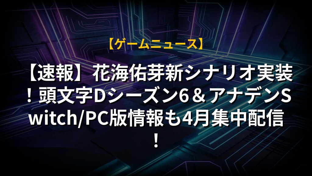 【速報】花海佑芽新シナリオ実装!頭文字Dシーズン6&アナデンSwitch/PC版情報も4月集中配信!