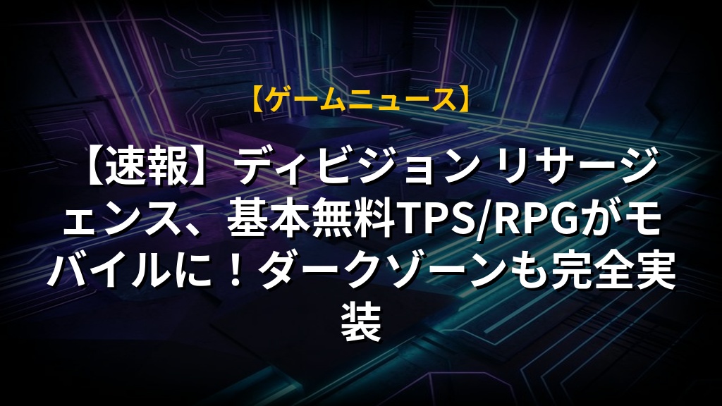 【速報】ディビジョン リサージェンス、基本無料TPS/RPGがモバイルに!ダークゾーンも完全実装