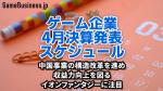 4月は、イオンファンタジー、エディア、クリーク・アンド・リバーといったゲーム関連企業の決算発表月です。