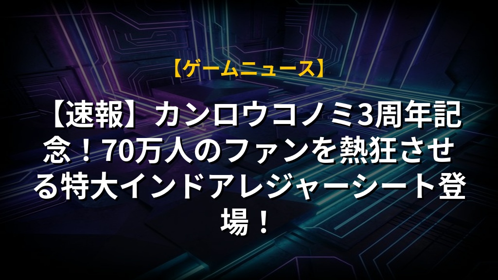 【速報】カンロウコノミ3周年記念!70万人のファンを熱狂させる特大インドアレジャーシート登場!