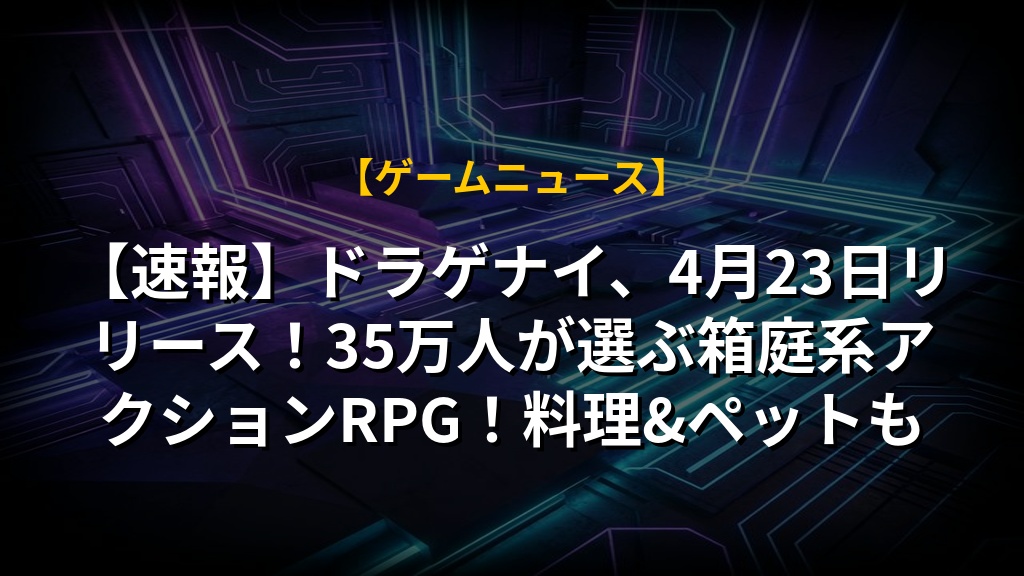 【速報】ドラゲナイ、4月23日リリース!35万人が選ぶ箱庭系アクションRPG!料理&ペットも