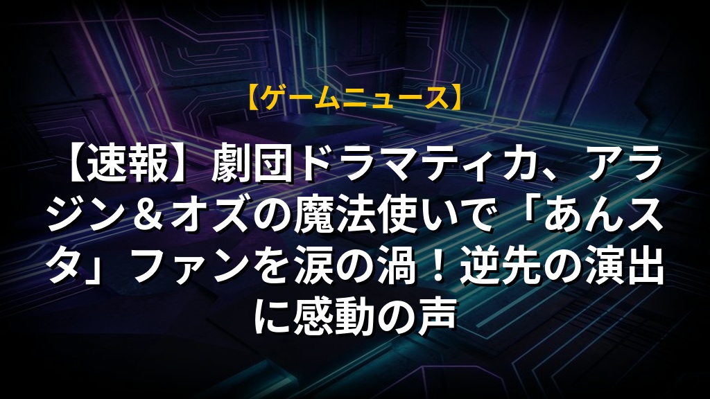 【速報】劇団ドラマティカ、アラジン&オズの魔法使いで「あんスタ」ファンを涙の渦!逆先の演出に感動の声