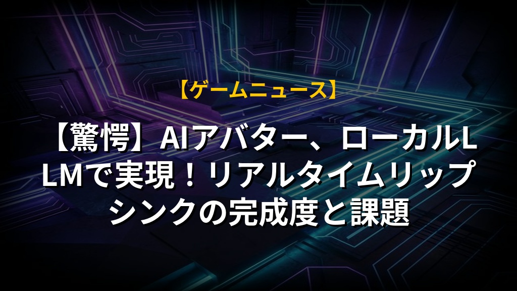 【驚愕】AIアバター、ローカルLLMで実現!リアルタイムリップシンクの完成度と課題の注目ポイントまとめ