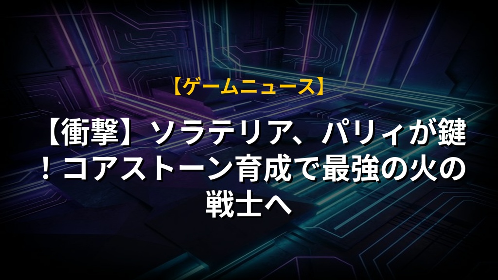 【衝撃】ソラテリア、パリィが鍵!コアストーン育成で最強の火の戦士への注目ポイントまとめ