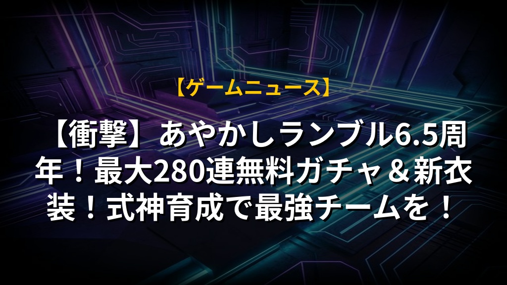 『あやかしランブル!』がリリース6.5周年を迎え、大規模イベントが開催中です!新イベントや可愛い新衣装、そして最大280連も引ける無料ガチャと、盛りだくさんな内容でプレイヤーを熱狂させています。