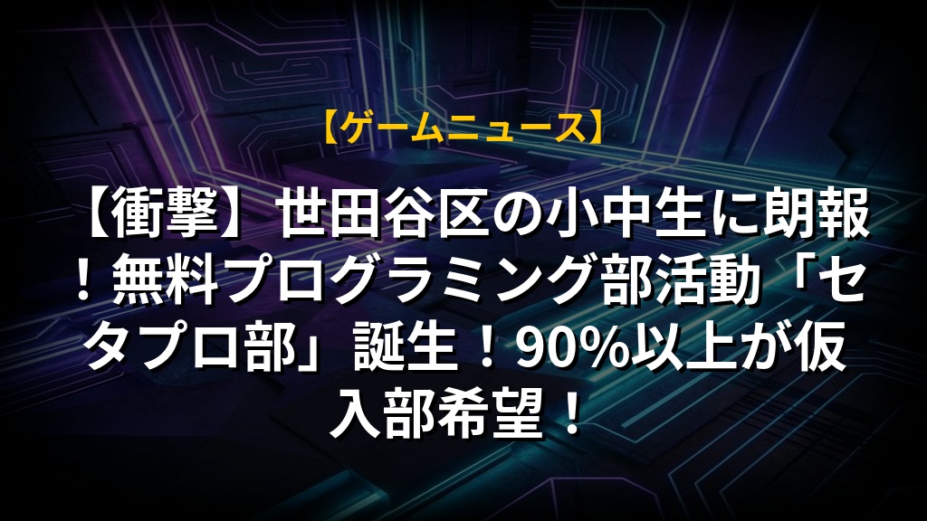 【衝撃】世田谷区の小中生に朗報!無料プログラミング部活動「セタプロ部」誕生!90%以上が仮入部希望!