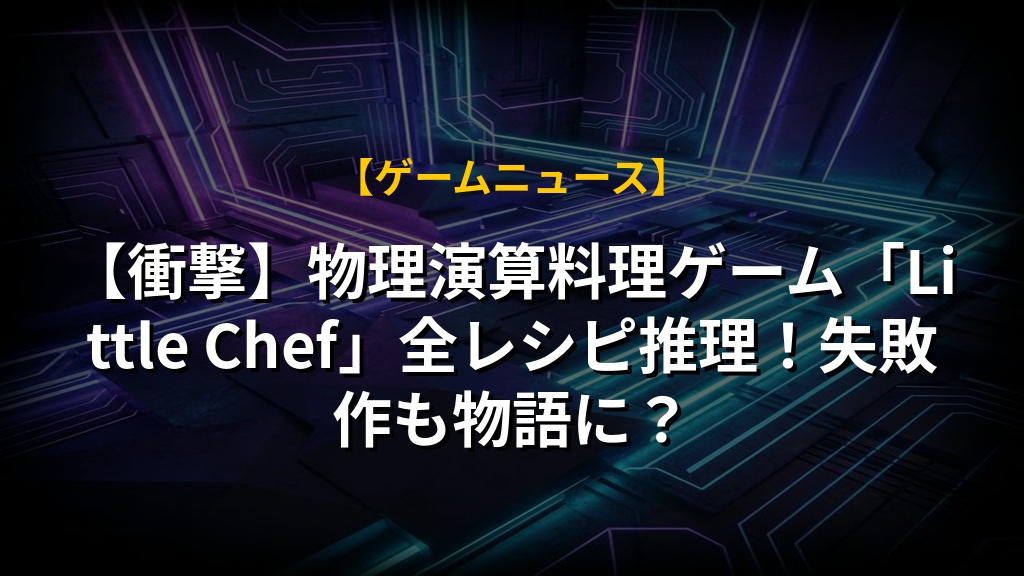 物理演算が楽しい、2D料理ゲーム「Little Chef: Cozy Cooking」がアーリーアクセス開始です。レシピはシルエットと名前だけなので、試行錯誤で食材を推理する面白さがあります。失敗作も記録されるので、気軽に実験できますよ。キッチン自体が謎解き空間になっていて、住人の物語を垣間見れるのも魅力です。今は英語のみですが、日本語対応に期待したいですね。コミュニティ機能が充実すれば、もっと盛り上がりそうです。