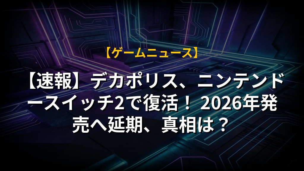 【速報】デカポリス、ニンテンドースイッチ2で復活! 2026年発売へ延期、真相は?の注目ポイントまとめ