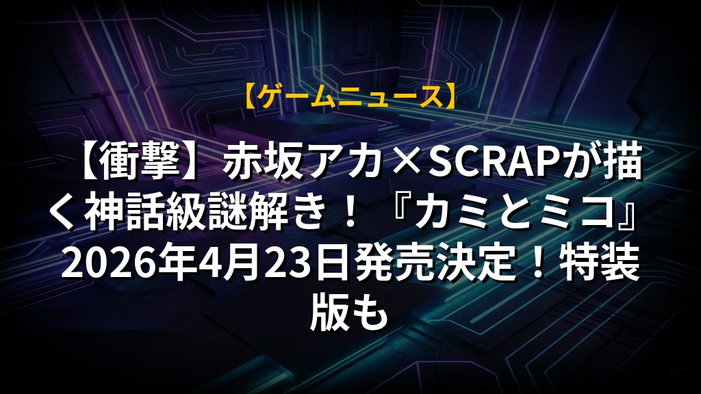 2026年4月23日発売決定の『カミとミコ』は、SCRAP、赤坂アカ氏、集英社ゲームズが贈る意欲的な謎解きアドベンチャーです。プレイヤーは“神”となり、少女ミコと共に歴史の難題に挑むという斬新なコンセプトで、物語と謎解きの両立に期待が高まります。ブラウザで手軽に遊べる点も魅力で、特装版には赤坂アカ氏のイラストや特典謎解きも! 予約開始なので、気になる方はぜひチェックしてみてください。今後のカウントダウン企画にも注目です。