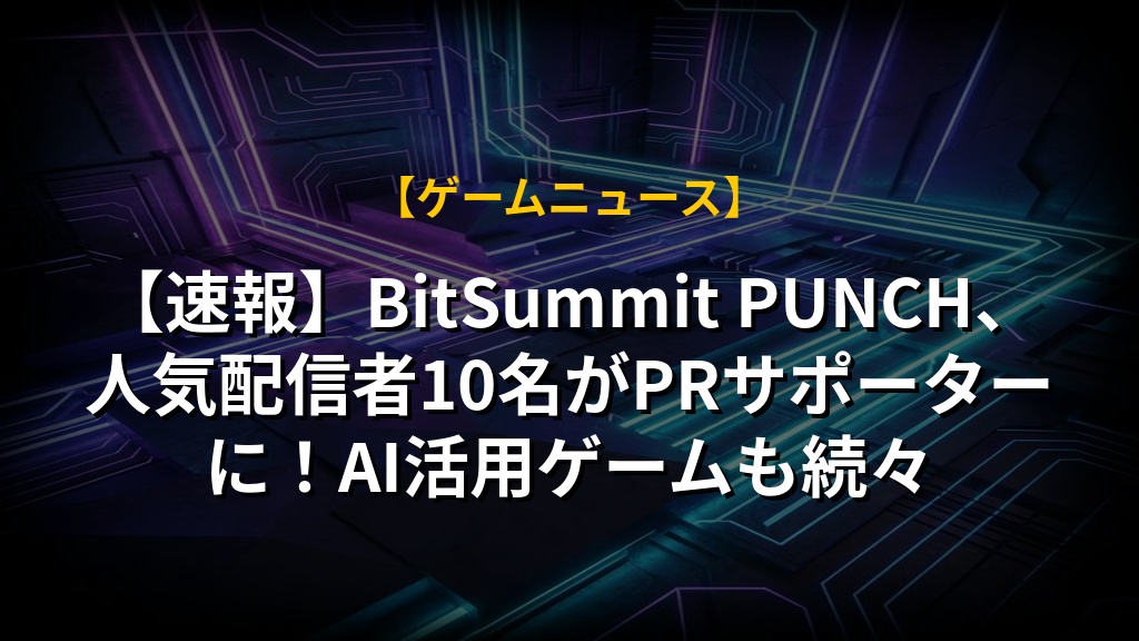 【速報】BitSummit PUNCH、人気配信者10名がPRサポーターに!AI活用ゲームも続々の注目ポイントまとめ