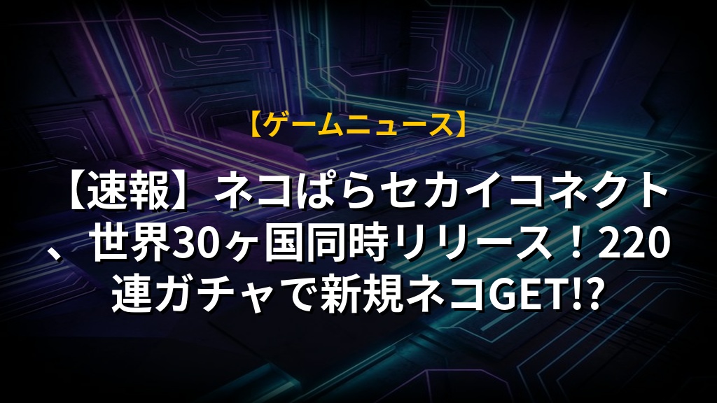 【速報】ネコぱらセカイコネクト、世界30ヶ国同時リリース!220連ガチャで新規ネコGET!?の注目ポイントまとめ