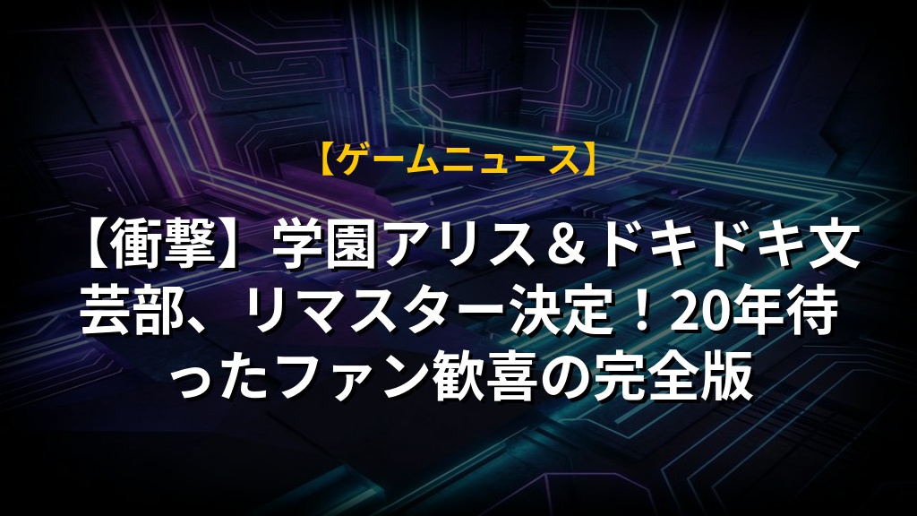 【衝撃】学園アリス&ドキドキ文芸部、リマスター決定!20年待ったファン歓喜の完全版