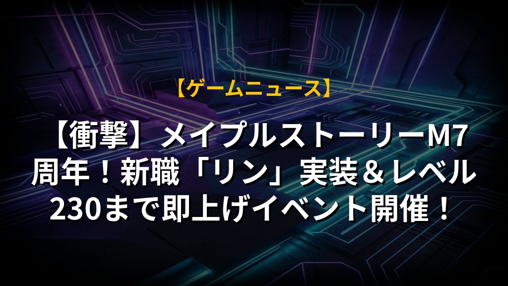 メイプルストーリーMが7周年を迎え、大型アップデートが実装されましたね!新職業「リン」は、魔法や回復スキルでパーティーをサポートできる頼もしい存在です。レベルアップを助けるイベントも充実しており、復帰するプレイヤーも新規プレイヤーも、スムーズに冒険を楽しめそうです。