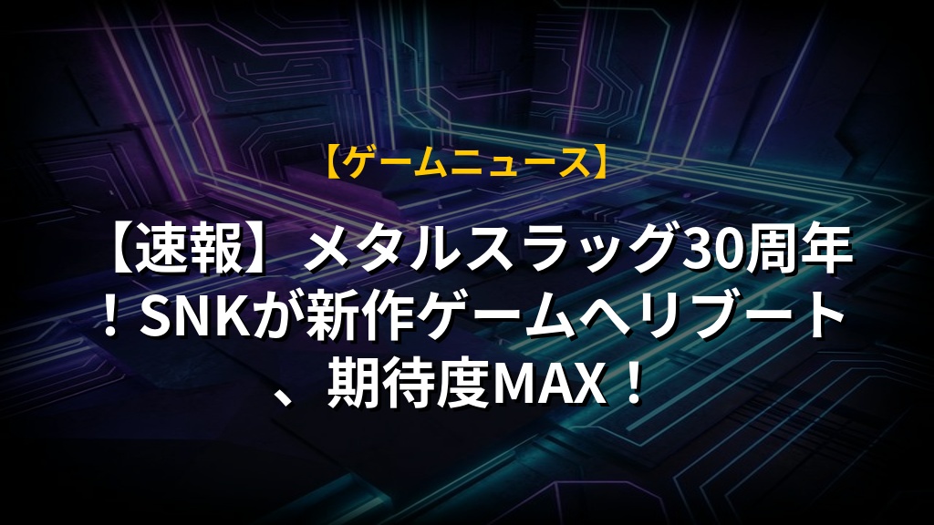 『メタルスラッグ』シリーズが30周年を迎え、記念プロジェクトがスタートしましたね!新作ゲーム開発を含む様々な企画が予定されており、往年のファンとしては本当に嬉しいです。ただ、単なる懐古ではなく「リブート」を目指すとのことなので、現代のゲームシーンに合わせた新しい『メタルスラッグ』が体験できるかもしれません。SNSや特設サイトも開設されたので、今後の情報発信に期待が高まります。SNKの挑戦が、新たなファン層を開拓し、シリーズを再び盛り上げてくれることを願っています!