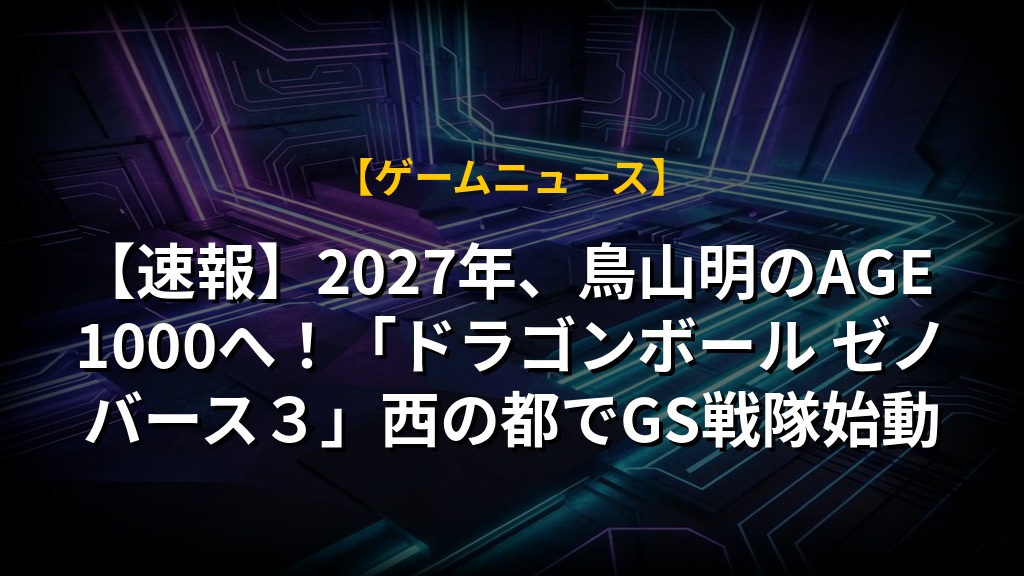 「ドラゴンボール ゼノバース3」が2027年に発売決定!鳥山明先生が描く未来世界「AGE 1000」を舞台に、新たな物語が始まります。西の都が発展した街並みや、個性的なキャラクターとの出会いが待ち受けているとのこと。先生の遺作となるこの世界で、どんな戦士を育てるか、今からワクワクしますね。オリジナルアニメーションも公開されているので、ぜひチェックしてみてください。発売まで少し時間はありますが、今後の情報公開が楽しみです。
