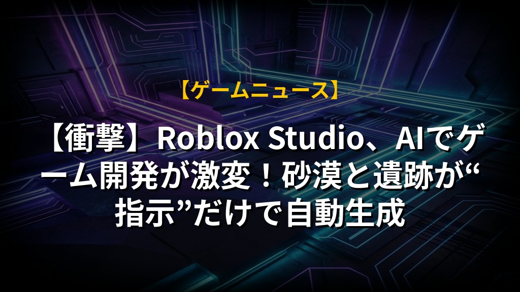 【衝撃】Roblox Studio、AIでゲーム開発が激変!砂漠と遺跡が“指示”だけで自動生成