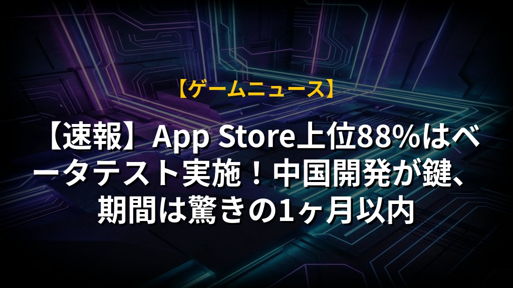 スマホゲームのベータテスト実施状況調査で、App Storeランキング100位以内の約35%がテストを実施していることが分かりました。特に海外、中でも中国開発のタイトルで複数回のテストが行われている点が特徴です。