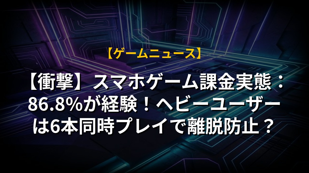 【衝撃】スマホゲーム課金実態:86.8%が経験!ヘビーユーザーは6本同時プレイで離脱防止?