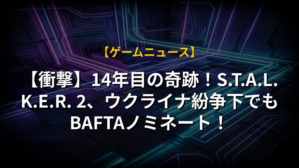 『S.T.A.L.K.E.R. 2』がBAFTAにノミネートされたニュースは、ゲーム業界に大きな波紋を呼んでいますね。ウクライナ紛争という困難な状況下で、14年もの歳月をかけて開発された本作が、単なるエンターテイメントを超えた存在として認められたことは、本当に素晴らしいです。