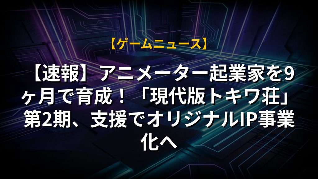 【速報】アニメーター起業家を9ヶ月で育成!「現代版トキワ荘」第2期、支援でオリジナルIP事業化へ