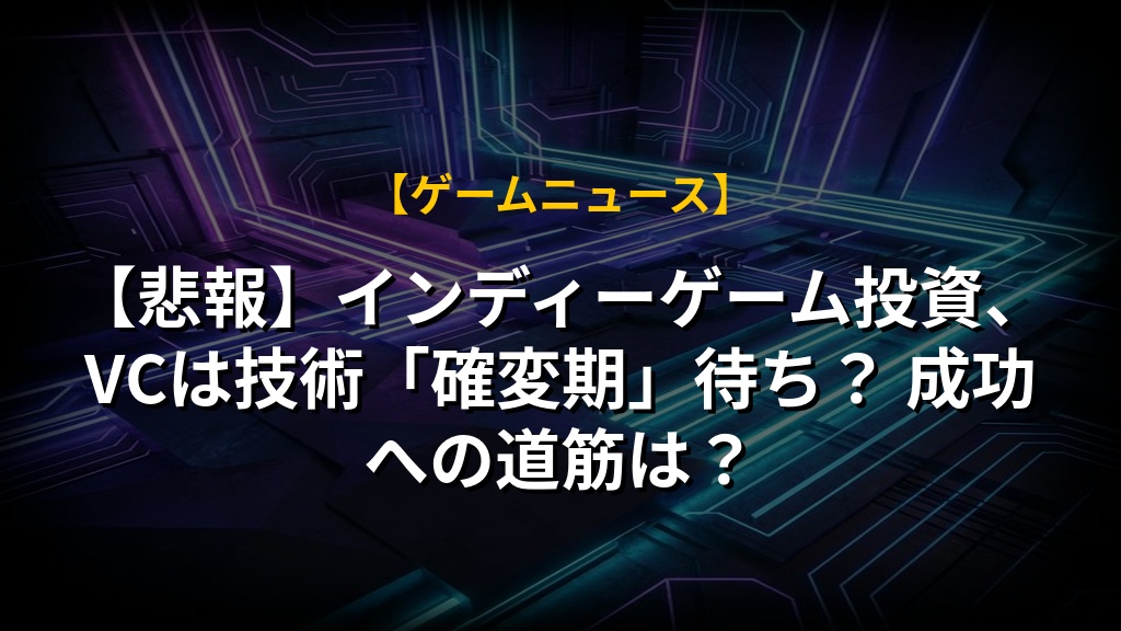 【悲報】インディーゲーム投資、VCは技術「確変期」待ち? 成功への道筋は?