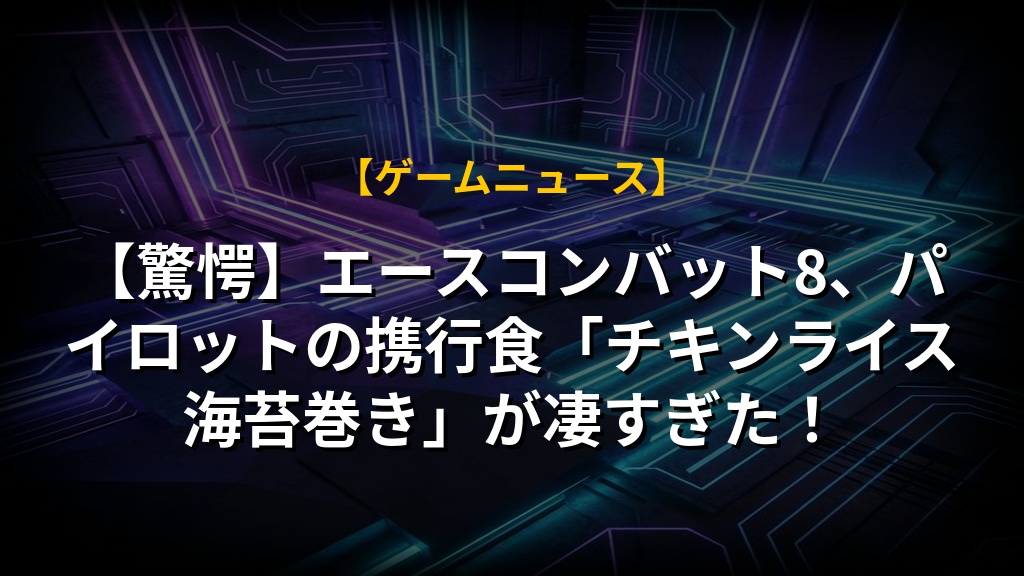 【衝撃】エースコンバット8、パイロット食「チキンライス海苔巻き」が凄すぎた!大西哲也氏が徹底検証エースコンバット8のニュース概要 2026年内の発売が予定されている「ACE COMBAT 8:WINGS OF THEVE」をテーマに...
