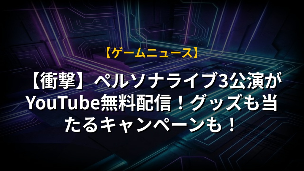 【衝撃】ペルソナライブ3公演がYouTube無料配信!グッズも当たるキャンペーンも!の注目ポイントまとめ
