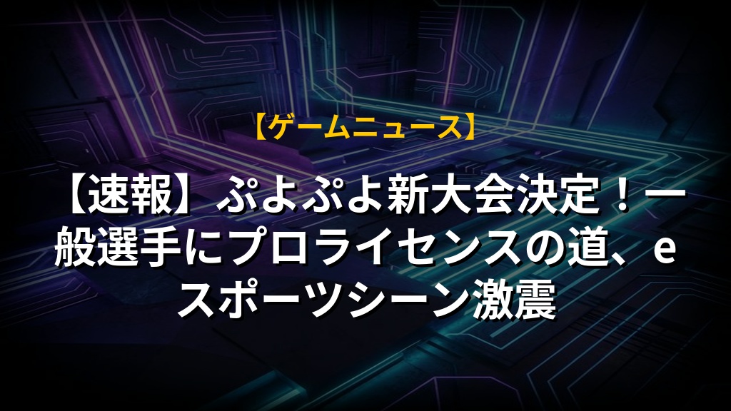 注目は、この新規大会で上位入賞すればプロライセンス取得のチャンスが広がる点。ぷよぷよeスポーツの裾野を広げる試みで、多くのプレイヤーが夢を持てるような嬉しいニュースです。セガさんの今後の展開に期待が高まります!