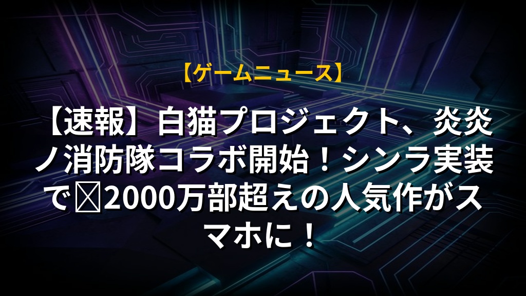 コロプラは、スマートフォン向けゲーム『白猫プロジェクト NEW WORLD’S』において、TVアニメ『炎炎ノ消防隊』とのコラボイベントを2026年4月30日に開始しました。