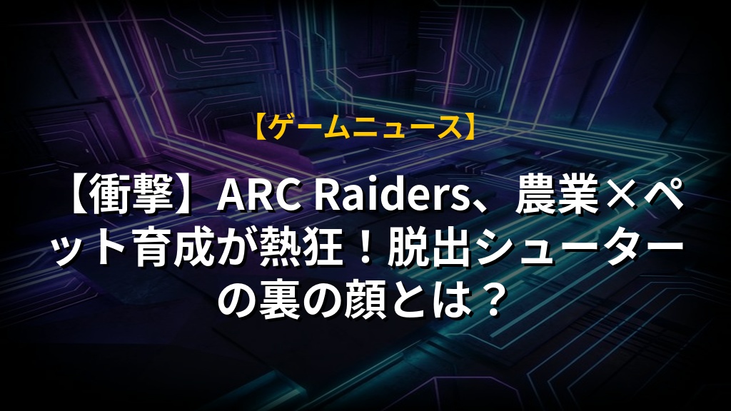 【衝撃】ARC Raiders、農業×ペット育成が熱狂!脱出シューターの裏の顔とは?の注目ポイントまとめ