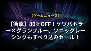 【衝撃】80%OFF!ケツバトラー×グランブルー、ソニックレーシングもすべり込みセール!