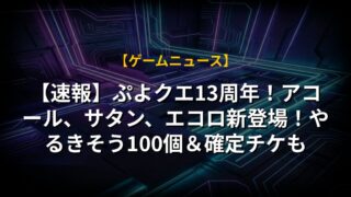 【速報】ぷよクエ13周年!アコール、サタン、エコロ新登場!やるきそう100個&確定チケも